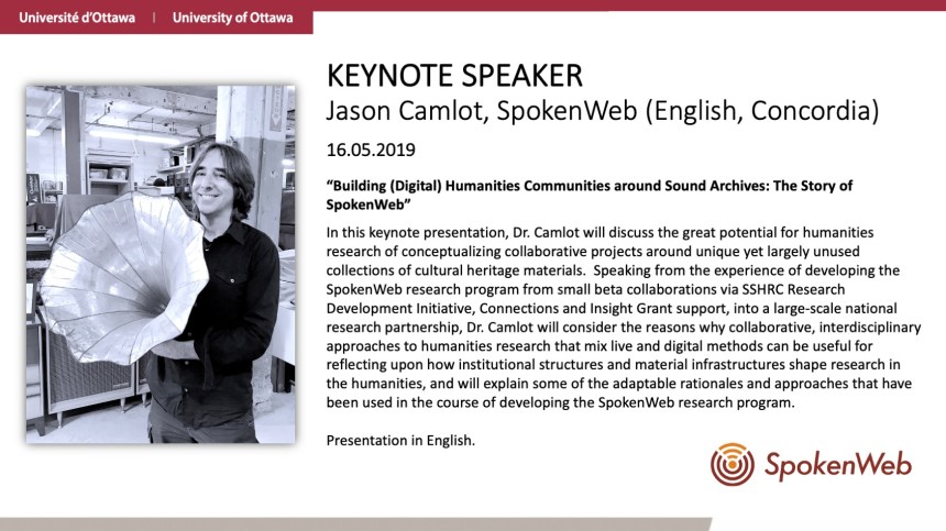 Jason Camlot speaks about the great potential for building collaborative projects around collections of audio recordings, based on his example of the SSHRC-funded SpokenWeb project.