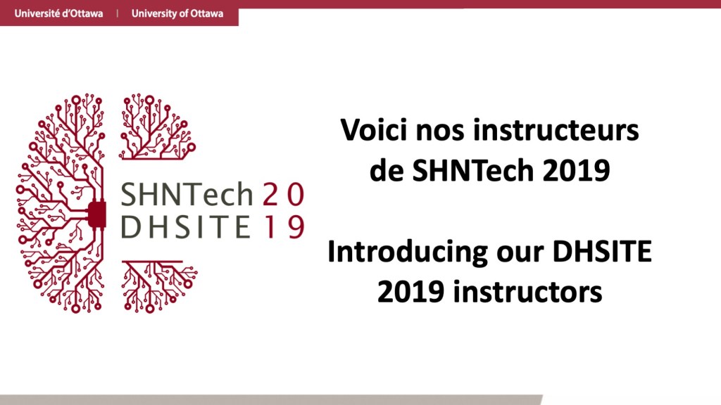 École d’été en sciences humaines numériques (appelée SHNTech) a eu lieu la semaine du 13 au 17 mai 2019 sur le campus principal de l’Université d’Ottawa. Les ateliers offerts en 2019 comprenaient l’Introduction au codage de texte, dirigée par la Dre Constance Crompton, l’Analyse des médias sociaux, dirigée par Prasadith Buddhitha, l’Introduction aux données ouvertes liées, dirigée par Catie Sahadath, la Visualisation des données, dirigée par le Dr Jarno van der Kolk, et la Composition numérique, dirigée par Julian Bertino.
