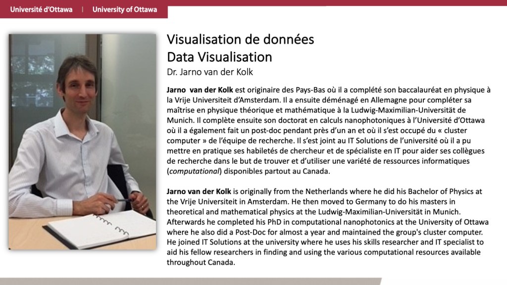 Nous avons présenté deux conférenciers invités en mai 2019. Marie-Hélène Roy-Gagnon de la Faculté de médecine de l’Université d’Ottawa s’est jointe à nous pour parler de son travail au sein de l’équipe du projet novateur iBALSAC, un projet de conception d’infrastructure pour la cartographie haute résolution de la population canadienne-française qui vise à créer une plateforme multisectorielle pour la recherche de pointe en sciences biologiques, biomédicales et sociales. Jason Camlot du département d’English de l’Université Concordia a présenté le projet SpokenWeb à l’audience. Il a évoqué le grand potentiel de la recherche en sciences humaines dans la conceptualisation de projets de collaboration autour de collections uniques mais largement inutilisées de matériaux du patrimoine culturel.