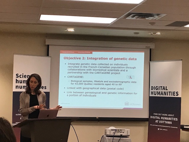 Marie-Hélène Roy-Gagnon a présenté les objectifs de sa recherche dans le context du projet i-BALSAC, financé par une subvention de la Fondation canadienne pour l’innovation.
